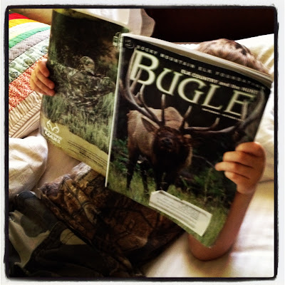 Coach stopped by on his way to West Texas and brought Hunter some magazines. He read through all of them before taking his nap! :)